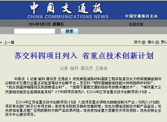 苏交科四项目列入 省重点技术创新计划—《中国交通报》