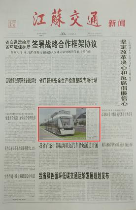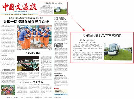 无接触网有轨电车南京起跑—《中国交通报》于2014年8月6日刊出
