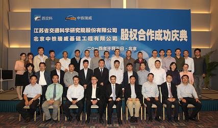 10月10日,江苏省交通科学研究院股份有限公司(以下简称“苏交科”)与北京中铁瑞威基础工程有限公司(以下简称“中铁瑞威”)在北京举办股权合作成功庆典。  双方的合作将进一步促进优势资源的整合,有利于带动苏交科在公路行业积累的建设和运营期咨询业务切入到铁路行业。随着新一轮铁路投资高峰到来,使得铁路规划咨询业务有着很大的发展空间。对于中铁瑞威而言,...